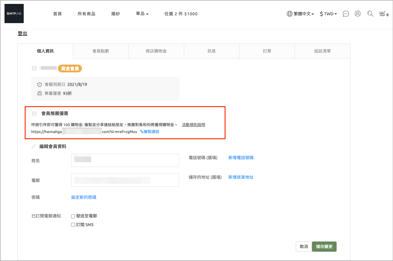 *注意:在此功能推出前就已經註冊的會員,需要先點按「產生推薦連結」,才會出現「推薦連結」及「複製連結」的按鈕(如下圖)。