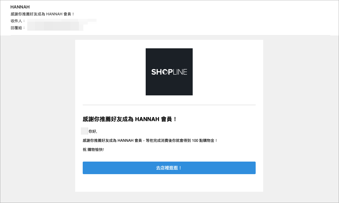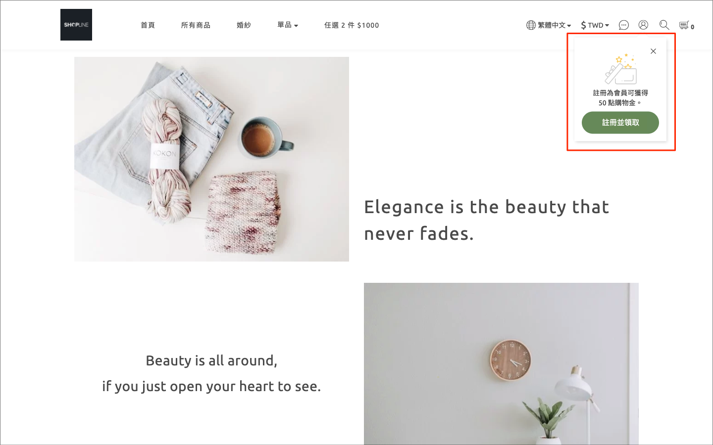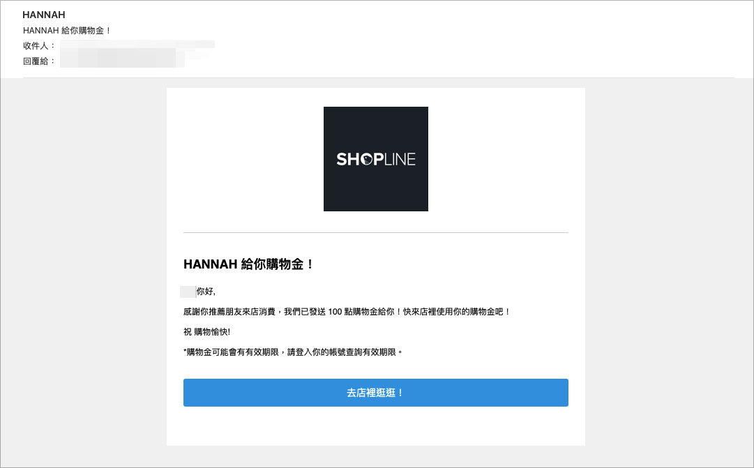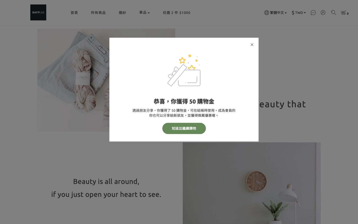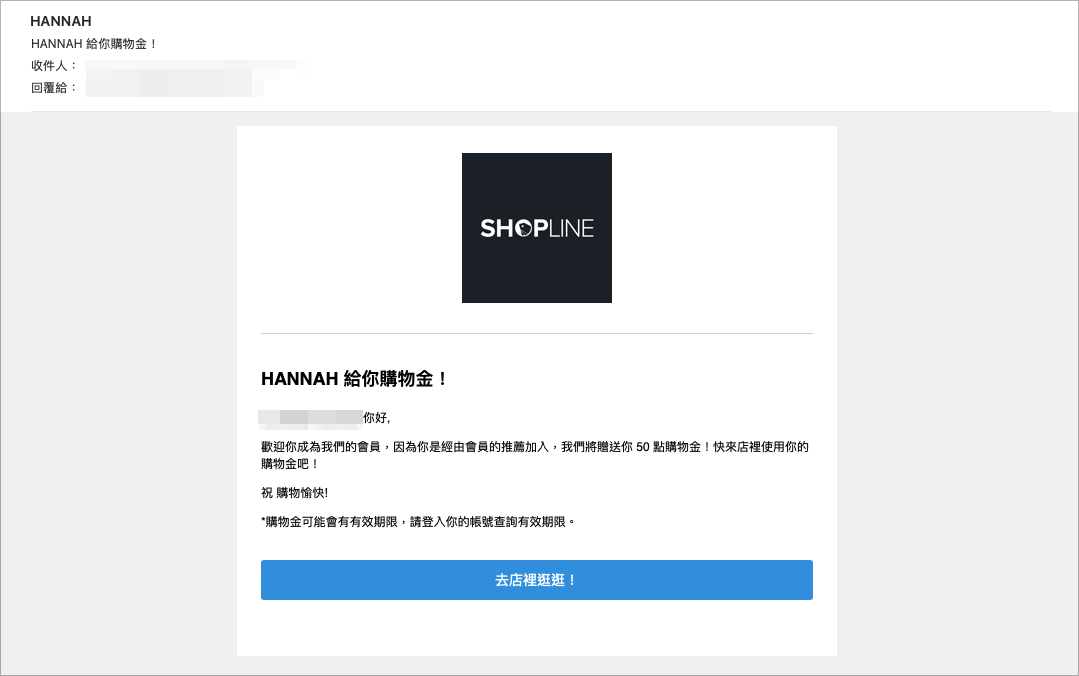 2. 註冊成功後,畫面會彈出獲得購物金的通知