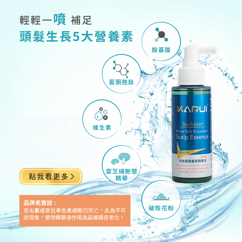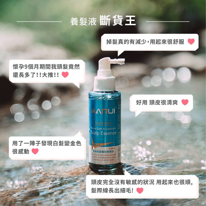 去角質淨化液→洗髮精→養髮精華液; 外出 活氧沁涼噴霧